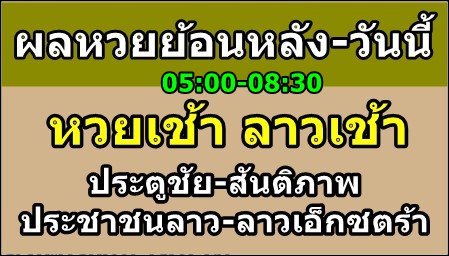 ธันวาคม วันที่ 1 ถึงวันที่ล่าสุด ผลหวยย้อนหลัง หวยลาวเช้า เวลา 05:00 - 08:30 - เริ่มต้นจาก หวยลาวประตูชัย สันติภาพ ประชาชนลาว ลาวเอ็กซตร้า ฮานอยเช้า พร้อมสถิติตัวเลขที่น่าสนใจ เช่น เลขตามวัน ตามวันที่ เลขวิ่งรูด ที่อาจจะใช้เป็นแนวทางหวยสำหรับงวดถัดไปได้