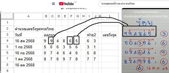 ดาวน์โหลดไฟล์ แปลงสูตรคำนวณหวยจาก Youtube ไปใช้กับแอป ชีต คลิกที่นี่