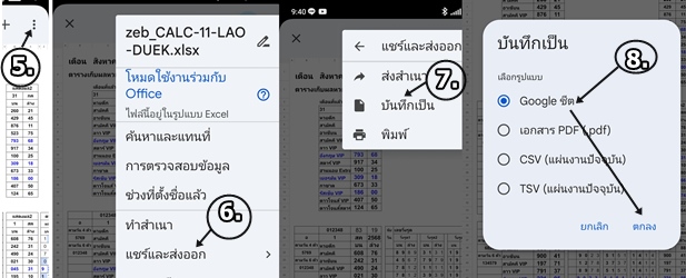 5. ไฟล์จะถูกเปิดด้วยแอป ชีต กดไอคอน 3 จุด
