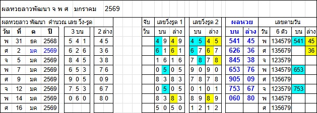 ไฟล์สำหรับแอปชีต ไว้ใช้เก็บผลหวยลาวพัฒนา ออกเวลา 20:00-20:30 ทุกวัน จันทร์ พุธ และศุกร์ มีสูตรคำนวณหาเลขวิ่งรูดในตัว เพื่อใช้กับงวดถัดไป