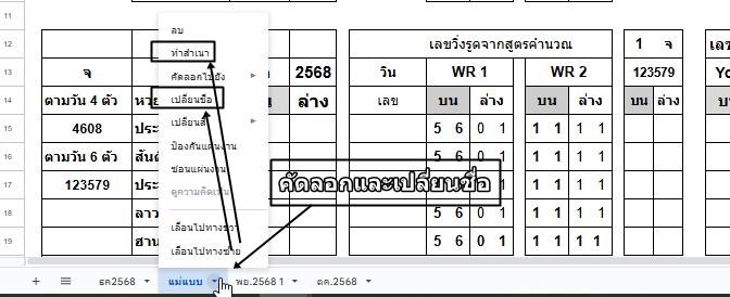 1. เปิดไฟล์ด้วยแอป ชีต แล้วคัดลอกชีตแม่แบบเก็บไว้