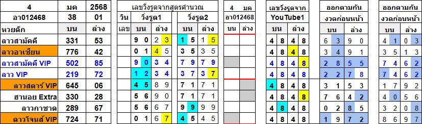 ไฟล์สำหรับแอปชีต ไว้ใช้เก็บผลหวยลาวดึก เวลา 20:00-00:30 เช่น ลาวสามัคคี อาเซียน สามัคคี VIP ลาว VIP ลาวสตาร์ VIP ฮานอยเอ็กซตร้า ลาวกาชาด ดาวโจนส์ VIP มีสูตรคำนวณหาเลขวิ่งรูดในตัว เพื่อใช้กับงวดถัดไป