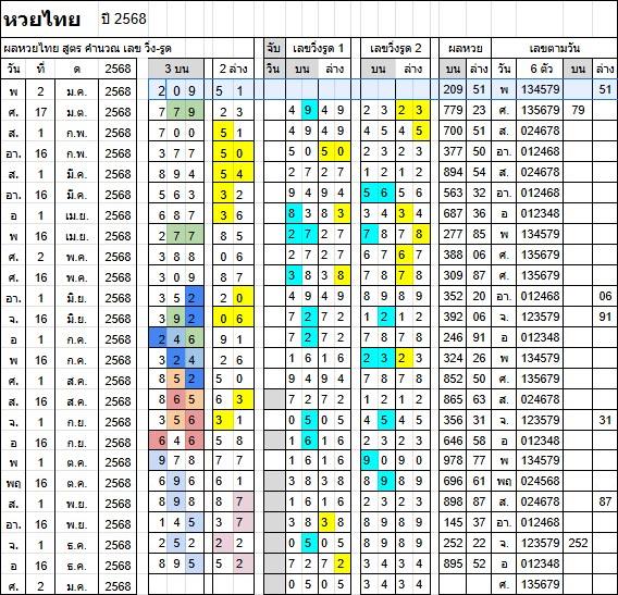 รวมผลหวยไทยย้อนหลังประจำปี 2568