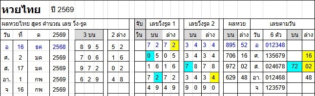 รวมผลหวยไทยย้อนหลังประจำปี 2569