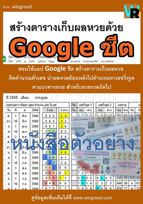อีบุ๊ค สอนใช้งานแอป Google ชีตในมือถือ พื้นฐานการใช้งาน คำสั่งที่เกี่ยวข้องกับการคำนวณเลขหวย การสร้างตารางเก็บผลหวยย้อนหลัง และการนำผลหวยย้อนหลังไปคิดคำนวณหาแนวทางเลขวิ่งรูด เพื่อนำไปใช้กับหวยรอบถัดไป พร้อมไฟล์ตัวอย่างประกอบการใช้งาน